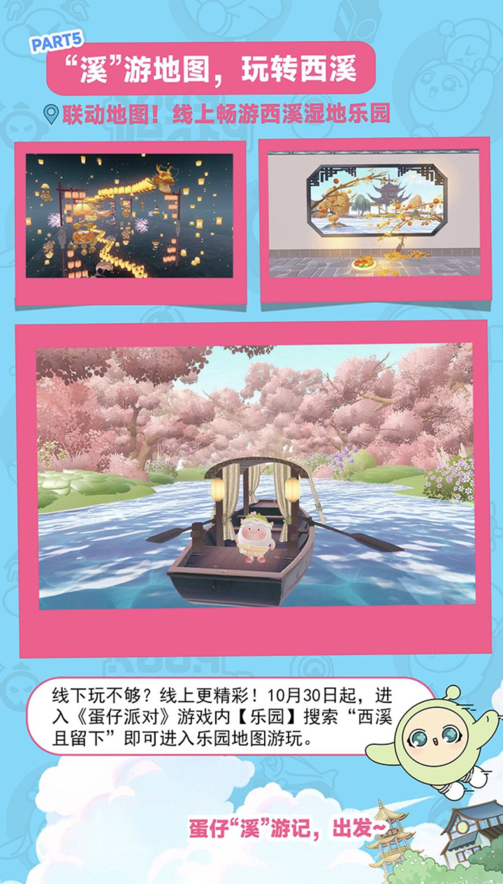 “以前来这里,就是逛风景、拍照片,现在能跟着地图闯关,还能获取相应奖励,这种体验太新鲜了。”十一假期,杭州市西溪湿地旅游区,00后游客小周惊喜地发现,他爱玩的手游“蛋仔派对”延伸到了线下,游戏里的4D信息地图对应覆盖了景区里的数百平方米。