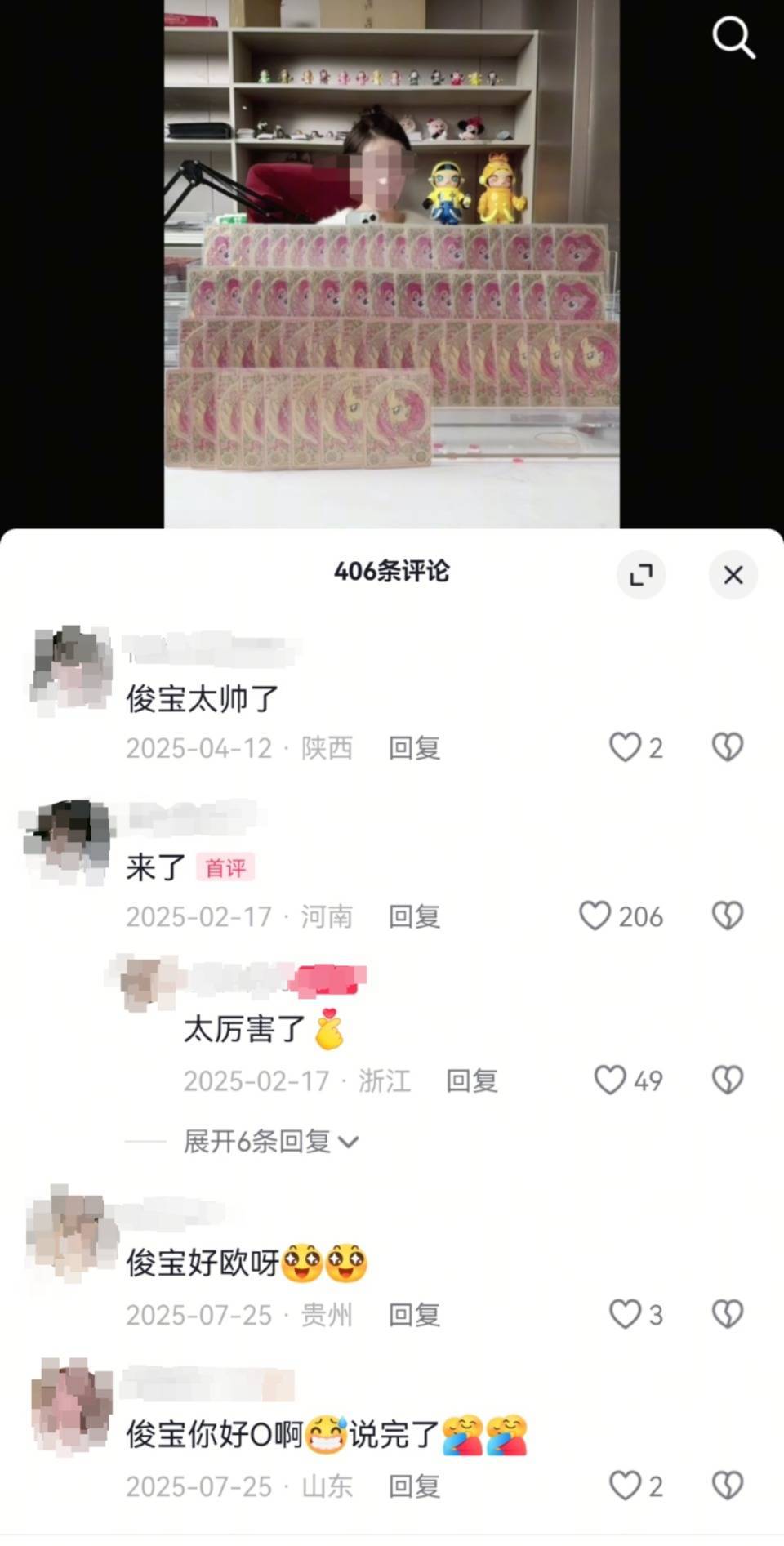 博主为小梦发布拆卡视频,评论区的称赞(某账号截图)