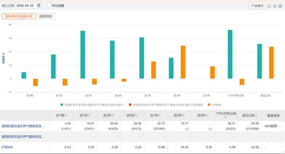 这一溢价有多高?数据显示,截至3月23日,标普油气ETF富国成立以来净值回报为25.9%,也就意味着,今天和昨天的溢价率,均已超过该基金成立以来的净值涨幅。该ETF年内净值回报达到36.31%,领先QDII基金市场。